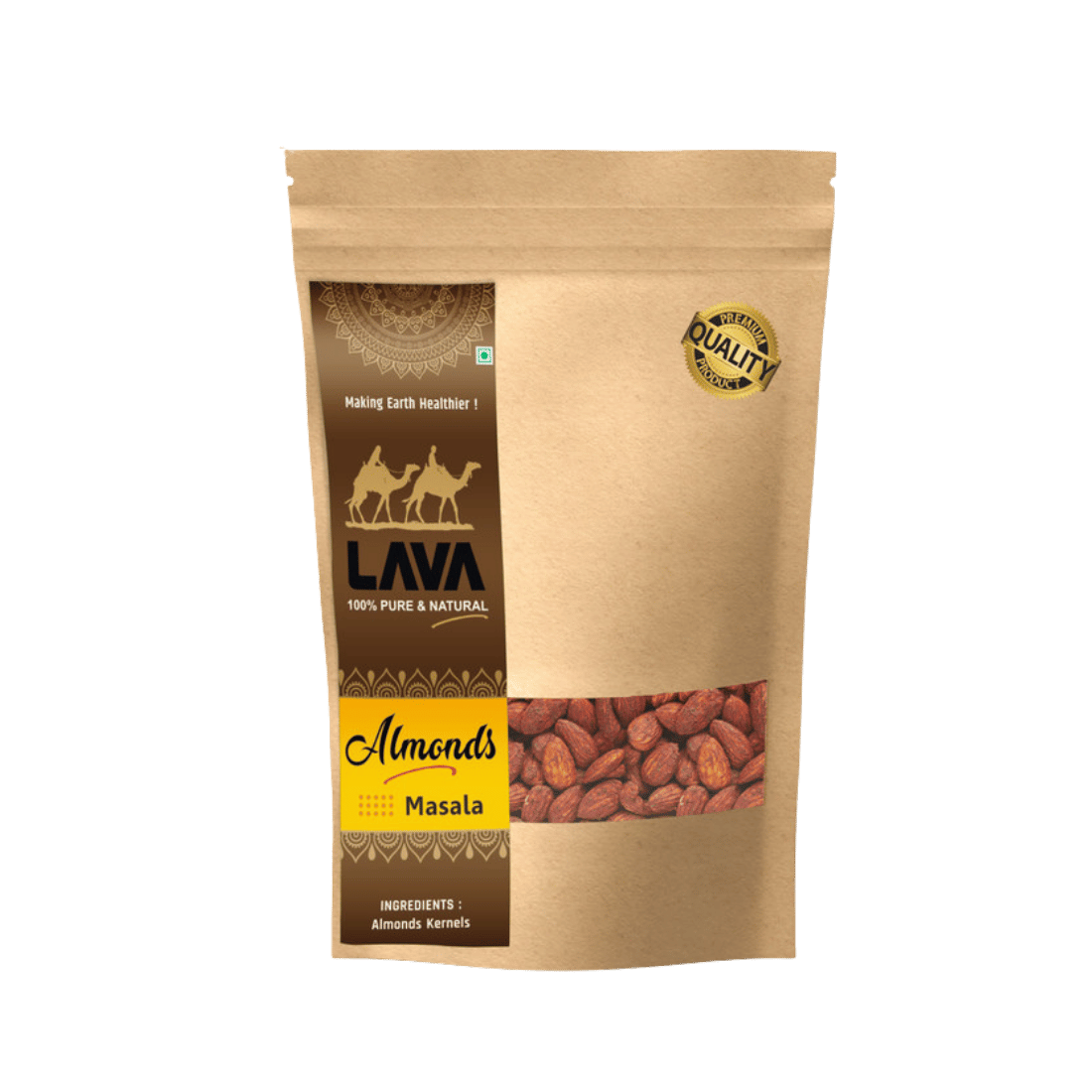 Almonds (Whole)! Each pack contains the choicest selection of handpicked nuts with a promise to consistently deliver premium quality. Enjoy pure Almonds that are crunchy, flavourful, and of uniform colour and deluxe size. As a consumer, you seek freshness, nutrition, and quality in everything you buy. Premium packaging keeps goodness and quality intact ensuring crunch and great flavor. With LAVA Almonds, enjoy guilt-free indulgence always! Almonds are naturally rich in protein, magnesium, and phosphorus all of which contribute to the maintenance of bone health.